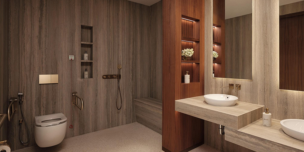 Accessible - Shower Cubical, WC Room, Wash Area, Anti-slip mats and grab bars. Step-free access for showers and bathtubs.