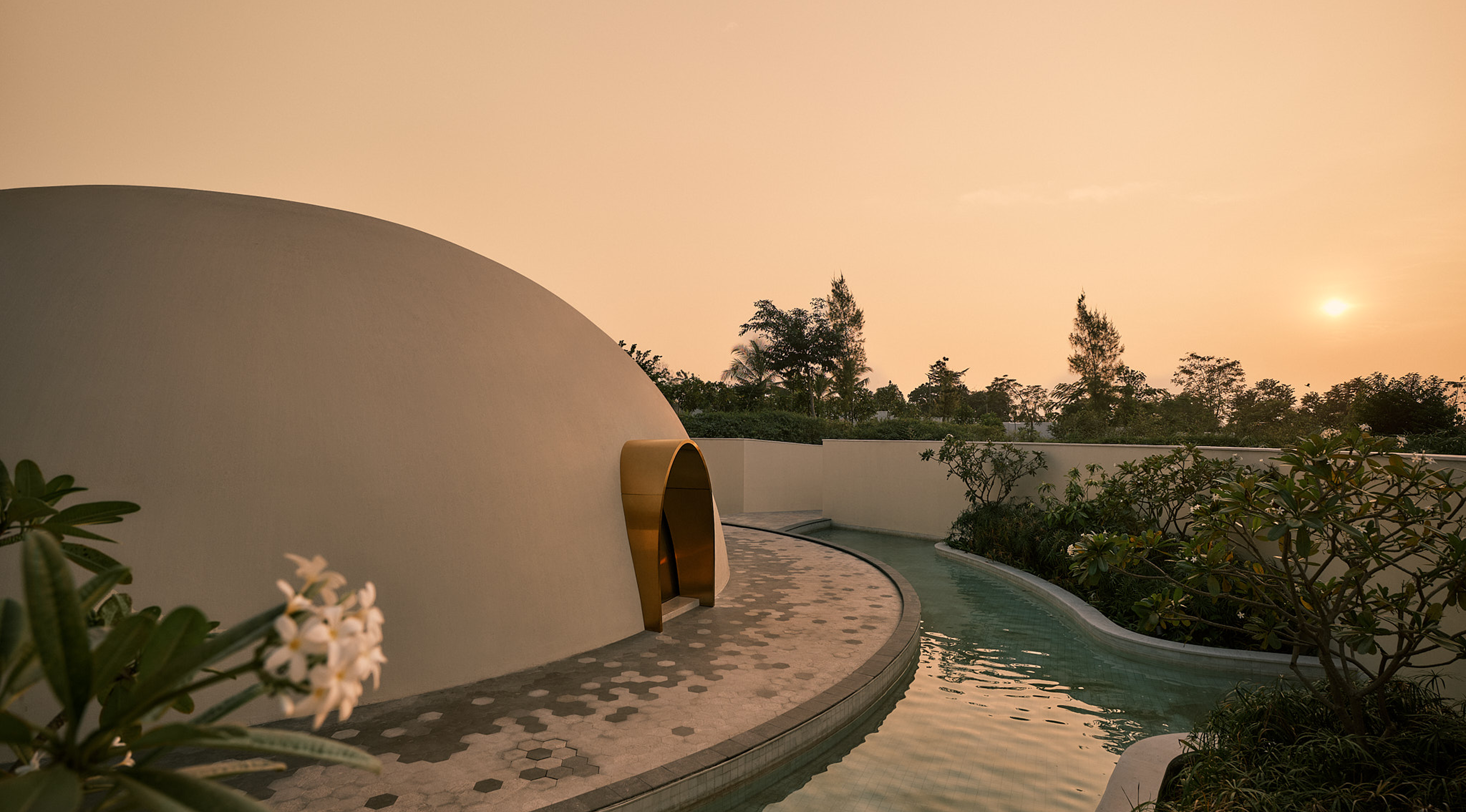 The architecture itself forms part of the experience. The domed structure is articulated