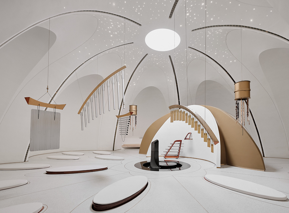 Developed in collaboration with Svaram, every element of the Sonorium, from architecture